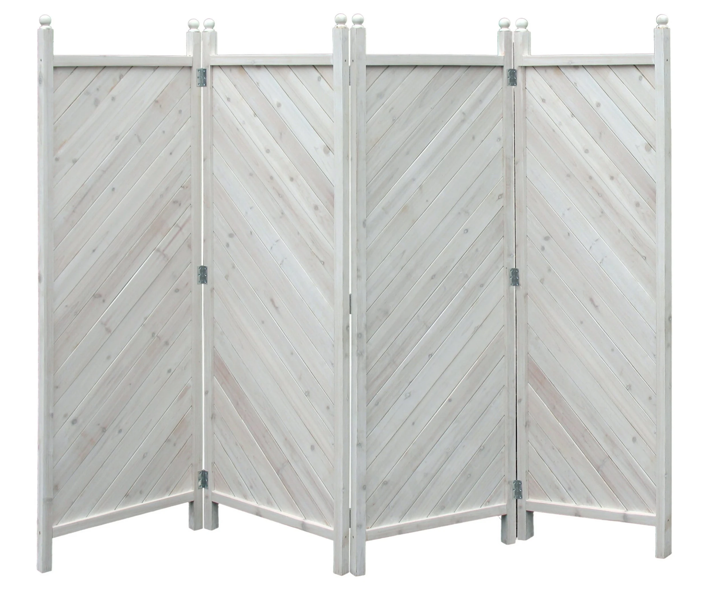 Aus massivem Kiefernholz, geweißt. Ideal als Sicht-, Sonnen- und Windschutz.